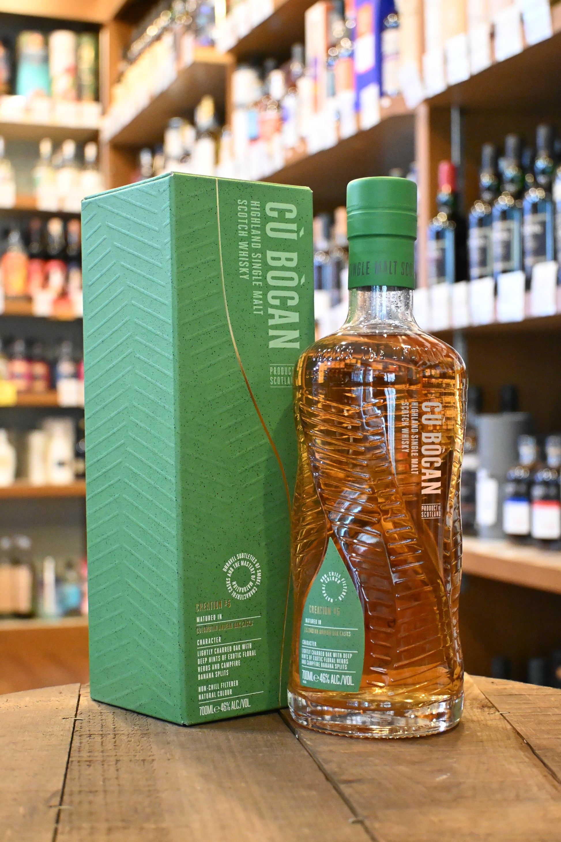 コロンビア産のアンデスオーク樽という珍しいタイプの樽と、ク・ボカン最大の特徴である軽やかなスモーキーさを携えた原酒が融合した結果、エキゾチックな花々やハーブのニュアンスが深い、非常に幻想的なシングルモルトが誕生しました。ほんのりあぶったクローブやスモークしたナツメッグのスパイシー感と、葉タバコのようなスモーク感が特徴です。